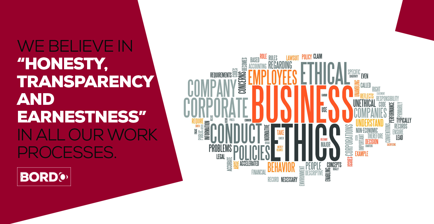Bordo Group has published Ethical Principles and Code of Business Conduct to instill ethical principles – having applied them in business processes since its inception – in its employees, suppliers, subcontractors, and all social stakeholders. This code of conduct serves as a guide for ensuring that all stakeholders apply the very same ethical values in business processes by embracing them, and for taking the necessary precautions when this is not followed. Group’s Ethical Principles and Code of Business Conduct mainly involve: • Pursuing public good, • Compliance with laws and other regulations, • Looking out for employee rights and work conditions, • Interaction with business partners and social stakeholders, • Striving for company rights and transparency.